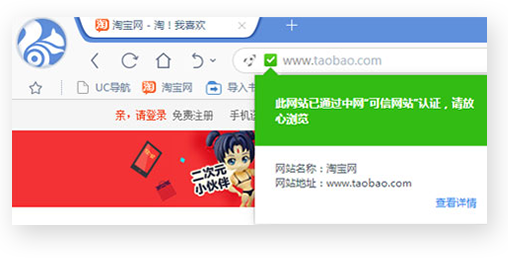 下载安装任意一款,均可在地址栏实现对网站真实身份的一键查验,轻松辨识网站真伪。